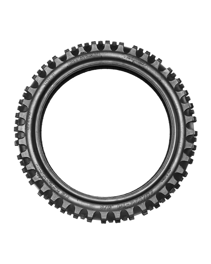 Whether you’re running a 10” or 12” pit bike setup, or a 14” front, Pivotrax EX (front) and EXP (rear) tires provide predictable handling and confident traction on dirt, sand, hardpack, and rocky terrain.