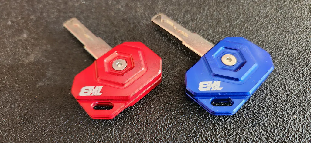 Replace the soft rubber top on your stock key with a CNC-machined aluminum key handle—a rugged, functional upgrade that improves grip, durability, and style. Designed specifically for Sur-Ron and E-Ride Pro models, this key handle gives your key a premium feel and makes it much harder to misplace.