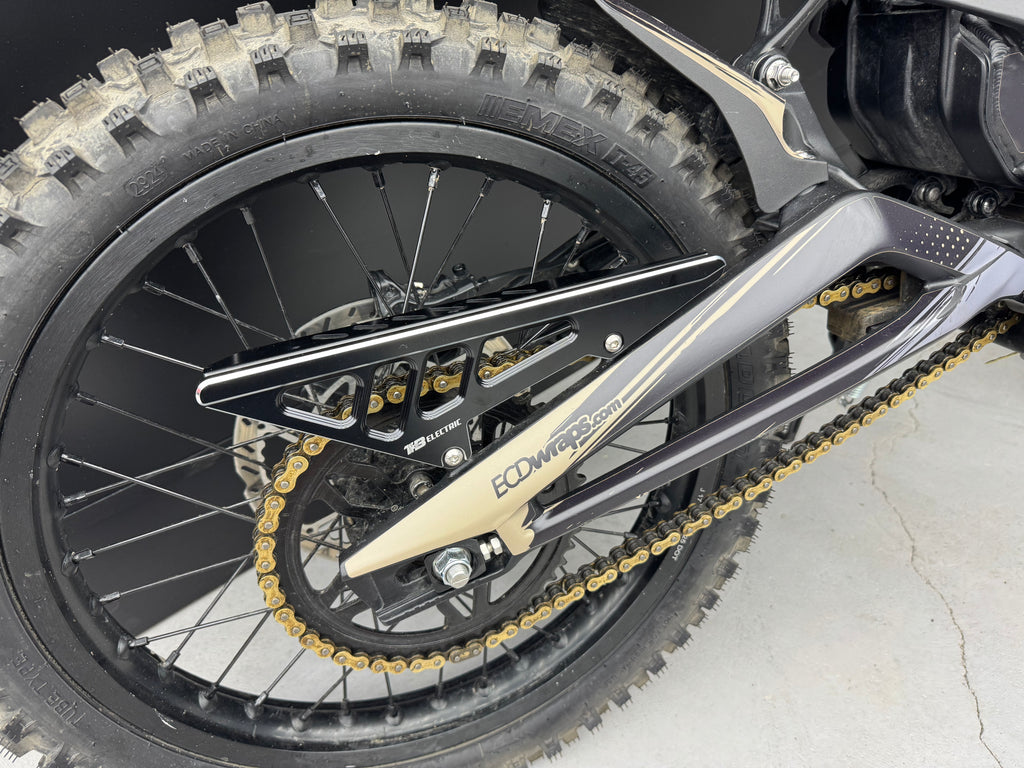 Upgrade your plastic chain guard to aluminum with the TB Talaria XXX Upgraded Chain Guard.